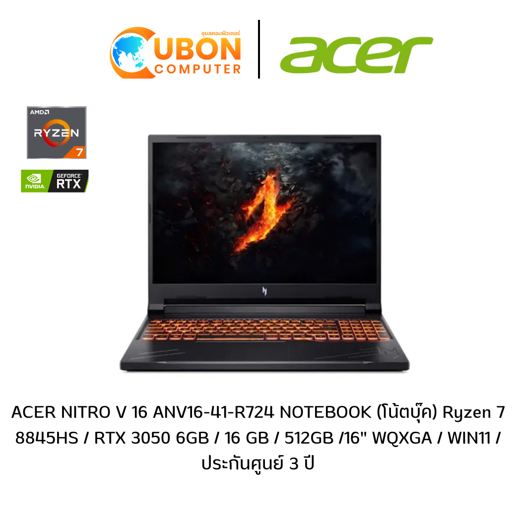 ACER NITRO V 16 ANV16-41-R724 NOTEBOOK (โน้ตบุ๊ค) AMD RYZEN 7 8845HS / RTX 3050 6GB / 16 GB / 512GB / WIN 11 HOME / ประกันศูนย์ 3 ปี