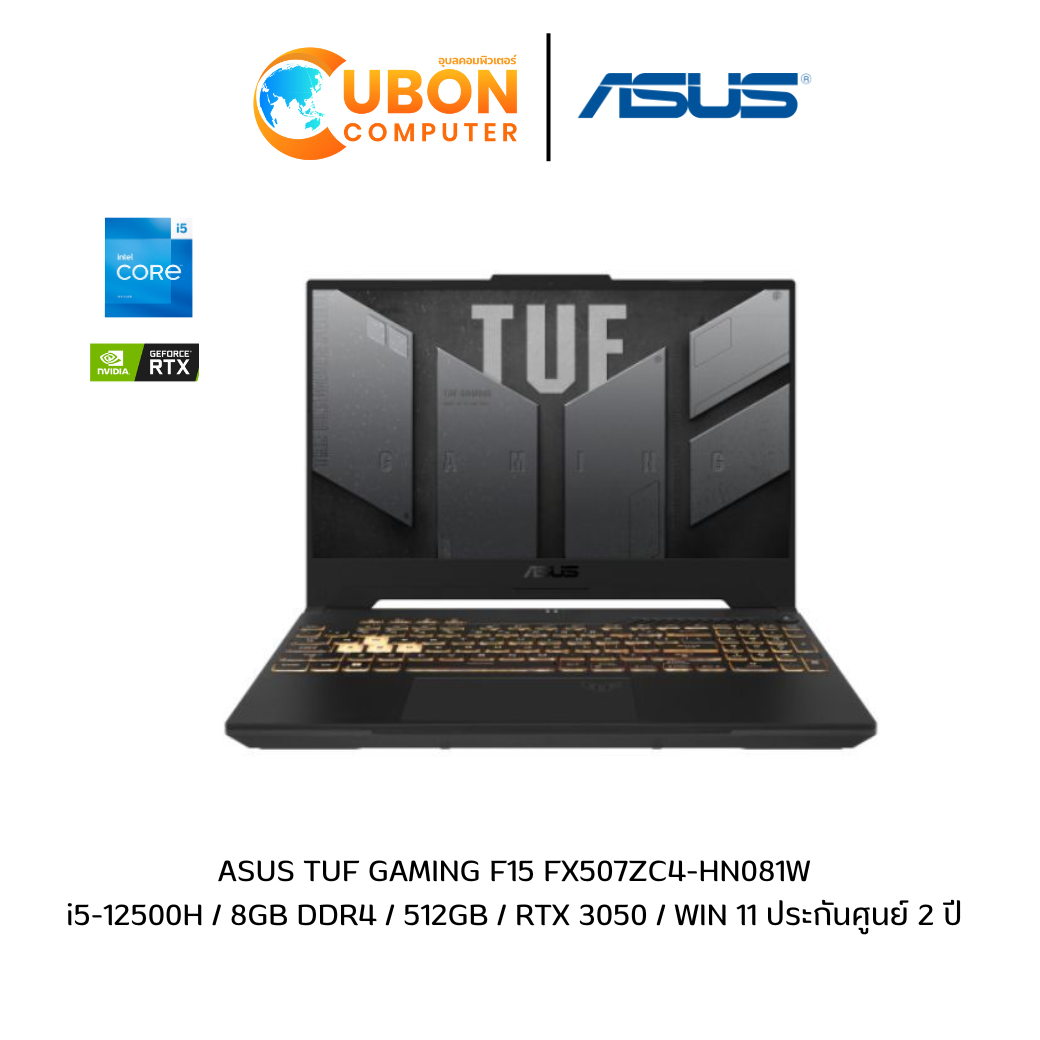 ASUS TUF GAMING F15 FX507ZC4-HN081W NOTEBOOK (โน้ตบุ๊ค) i5-12500H / 8GB DDR4 / 512GB / RTX 3050 / WIN 11 ประกันศูนย์ 2 ปี