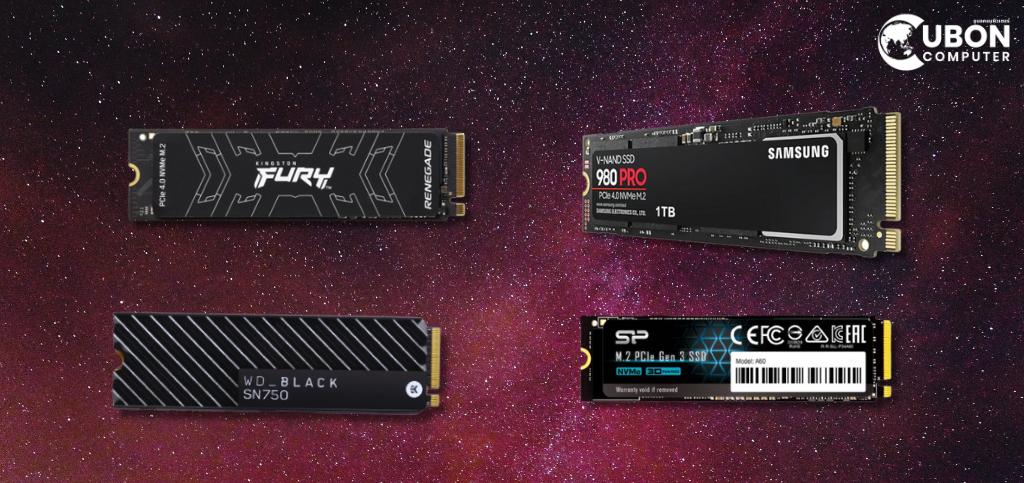 ในปัจจุบันสามารถเลือกที่เก็บข้อมูลได้หลากหลายมีตั้งแต่ HDD ในแบบ Sata หรือจะเป็น SSD แบบ Sata แอดมินขอแนะนำเป็น SSD โดยจะมีทั้งแบบ SSD Sata 2.5″ อย่างไรก็ตามก็ขึ้นอยู่กับการใช้งานด้วยเช่นกัน หรือจะใช้ร่วมกันก็ได้ สำหรับผู้เริ่มต้นควรเลือกซื้อเป็น M.2 NVMe รุ่นใหม่ ที่เร็วและแรงกว่าเดิม เป็นที่นิยมสำหรับเกมเมอร์เพื่อลดเวลาในการโหลดตัวเกม ทำให้เข้าเกมส์ได้รวดเร็ว ราบรื่น การทำงานที่ไม่สะดุด ส่วน Storage แบบ Harddisk เป็นตัวช่วยในการจัดเก็บข้อมูลเพราะมีความจุที่มากราคาค่อนข้างประหยัด