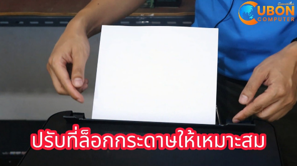 1. หลังจากเติมหมึกเสร็จเรียบร้อยแล้ว ใส่กระดาษทางด้านบน EPSON EcoTank L3250 รุ่นนี้สามารถใส่กระดาษได้สูงสุด 100 แผ่น การใส่กระดาษให้เปิดที่ปรับกระดาษใส่กระดาษเข้าไปด้านบน ปรับที่ล็อกกระดาษให้เหมาะสม