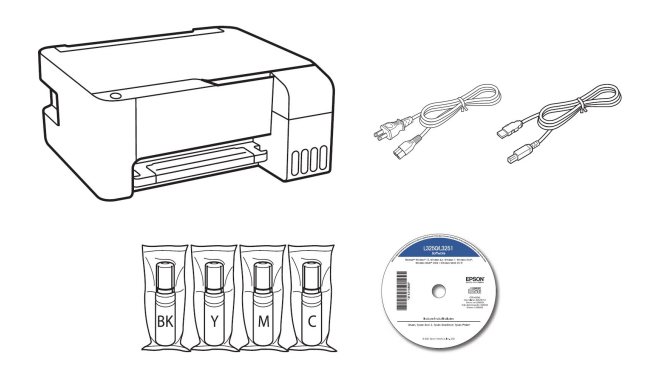 - ภายในกล่อง จะประกอบด้วย คู่มือ พร้อมแผ่น Driver, หมึก 1 ชุด (4 สี), สายไฟเชื่อมต่อ USB, สายไฟ