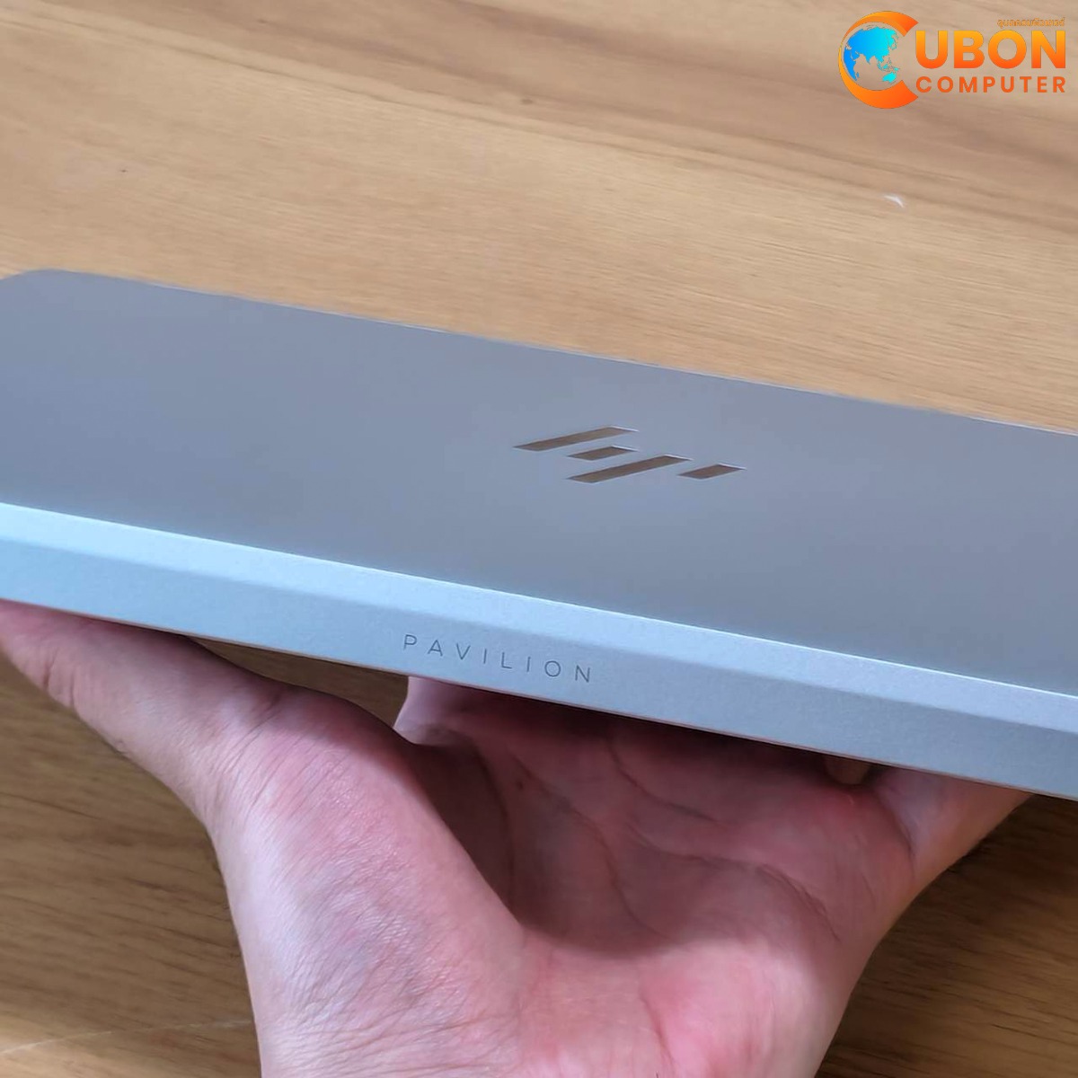 ฝาบนมีโลโก้เฉพาะของ HP Pavilion ตัววัสดุบอดี้ทำมาจากเเมกนีเซียมอลูมิเนียม ทำให้ตัวเครื่องมีน้ำหนักเบาเเละสัมผัสของโน๊ตบุ๊คมีความ Premium น่าใช้งานเป็นอย่างมาก