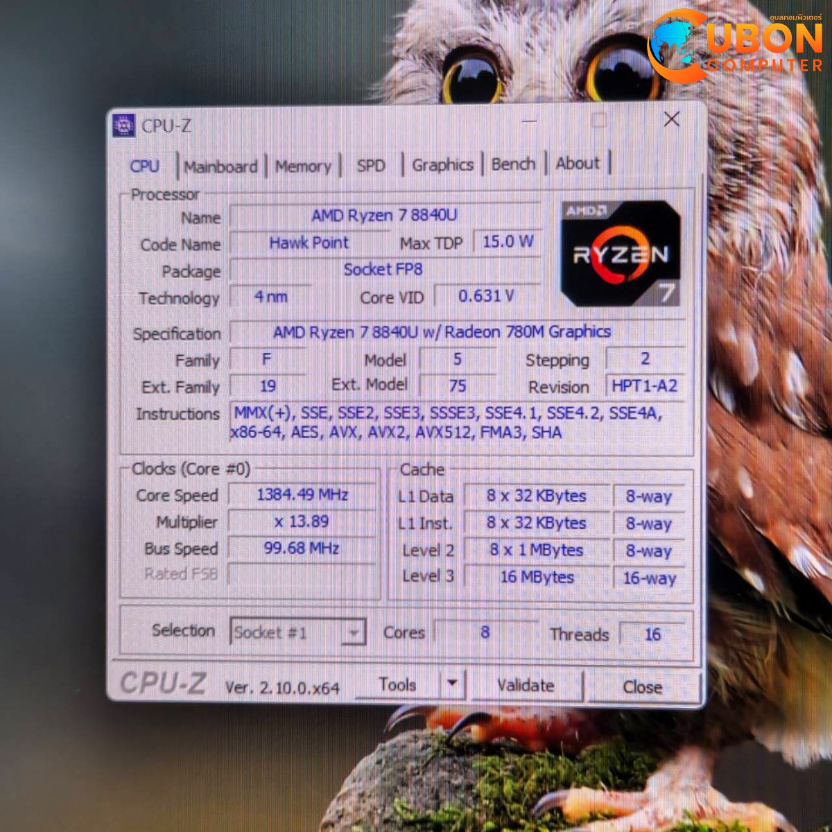 CPU : AMD Ryzen 7 8840U With AMD Ryzen AI (3.3GHz up to 5.1GHz, 8MB L2 Cache / 16MB L3 Cache)