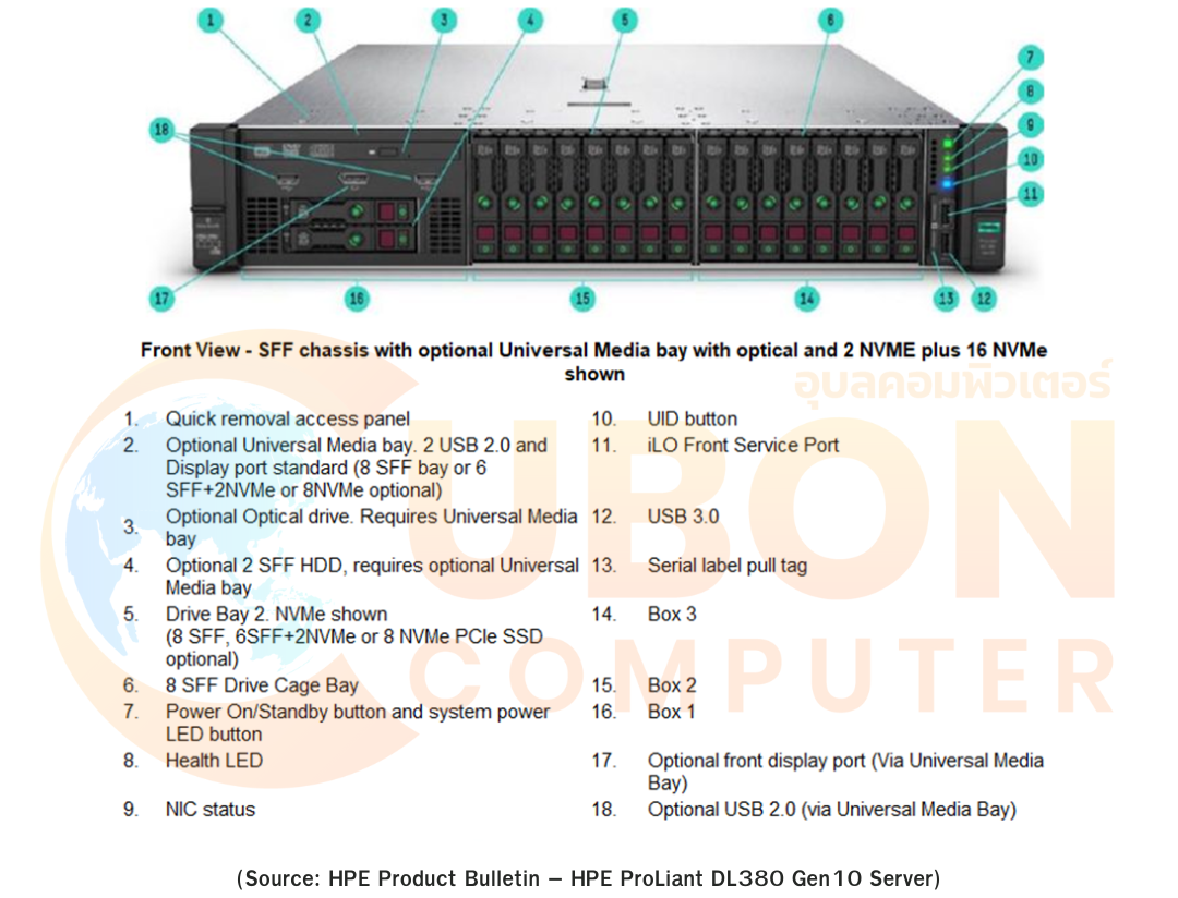 HPE DL380 Gen10 มีการออกแบบที่สามารถให้การยืดหยุ่นและปรับเปลี่ยนตามความต้องการขององค์กรได้ ทำให้เป็นเครื่อง Server (เซิร์ฟเวอร์) ที่หลากหลายและสามารถใช้ต่อยอดได้ในหลายสภาพแวดล้อมและงานที่ต้องการพบกับ HPE ProLiant DL380 Gen10 Server จากทางอุบลคอมพิวเตอร์ แอนด์ เทเลคอมเซอร์วิสได้แล้ว