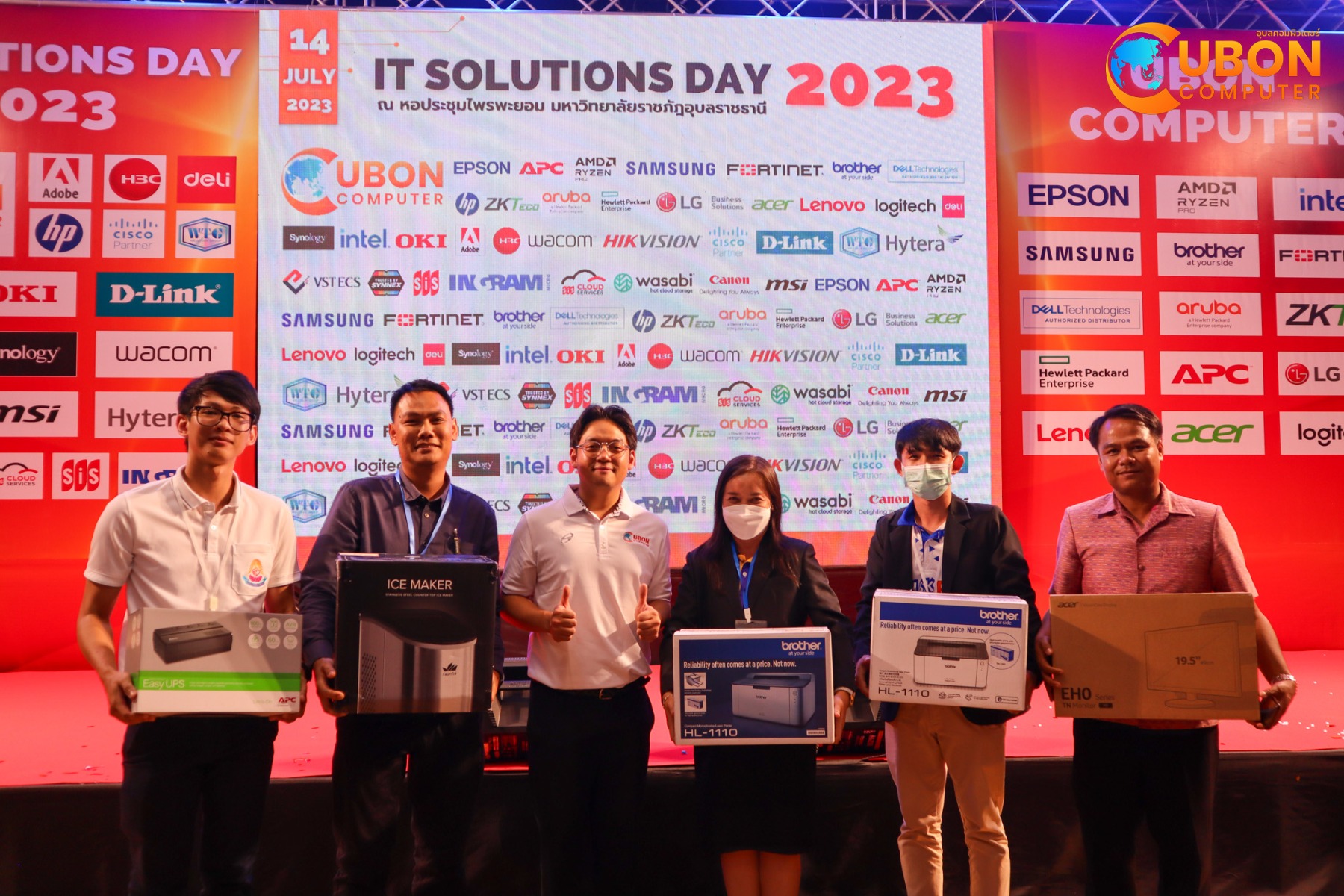 ห้างหุ้นส่วนจำกัด อุบลคอมพิวเตอร์ แอนด์ เทเลคอมเซอร์วิส ร่วมกับบริษัทไอทีชั้นนำในประเทศไทย จัดงานสัมมนาเชิงวิชาการภายใต้หัวข้อ IT SOLUTIONS DAY 2023 เมื่อวันที่ 14 กรกฎาคม 2566 ตั้งแต่เวลา 08.30 ถึง 16.30 น. ที่ผ่านมา ณ หอประชุมไพรพะยอม มหาวิทยาลัยราชภัฏอุบลราชธานี โดยมีหน่วยงานภาครัฐและภาคเอกชนมากว่า 100 หน่วยงานที่สนใจลงทะเบียนเข้าร่วมฟังงานสัมมนาในครั้งนี้ อาทิ โรงพยาบาล โรงเรียน และมหาวิทยาลัย ในจังหวัดอุบลราชธานีและจังหวัดใกล้เคียง (ศรีสะเกษ อำนาจเจริญ ยโสธร) โดยจุดประสงค์ของการจัดงานในครั้งนี้เพื่อเป็นการให้ข้อมูลเกี่ยวกับเทคโนโลยีใหม่ที่เป็นประโยชน์สำหรับองค์กร