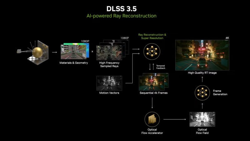 ย้อนกลับไปเมื่อห้าปีที่แล้ว NVIDIA ได้เปิดตัว DLSS การปฎฺิวัติกราฟิกด้วยความเร็วที่ดีขึ้นและคุณภาพที่ดีขึ้นผ่านทางปัญญประดิษฐ์โดยการใช้ AI ในการสร้างเฟรมซึ่งเพิ่มความเร็วในการเรนเดอร์สูงสุด 4 เท่า ทำให้ได้ภาพที่คุณภาพยอดเยี่ยมในปัจจุบันการเรนเดอร์ก้าวไปอีกขึ้นด้วย DLSS 3.5 Ray Restruction ซึ่งทาง NVIDIA ประกาศจะพร้อมใช้งานในฤดูใบไม้ร่วงนี้