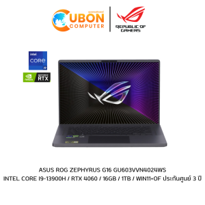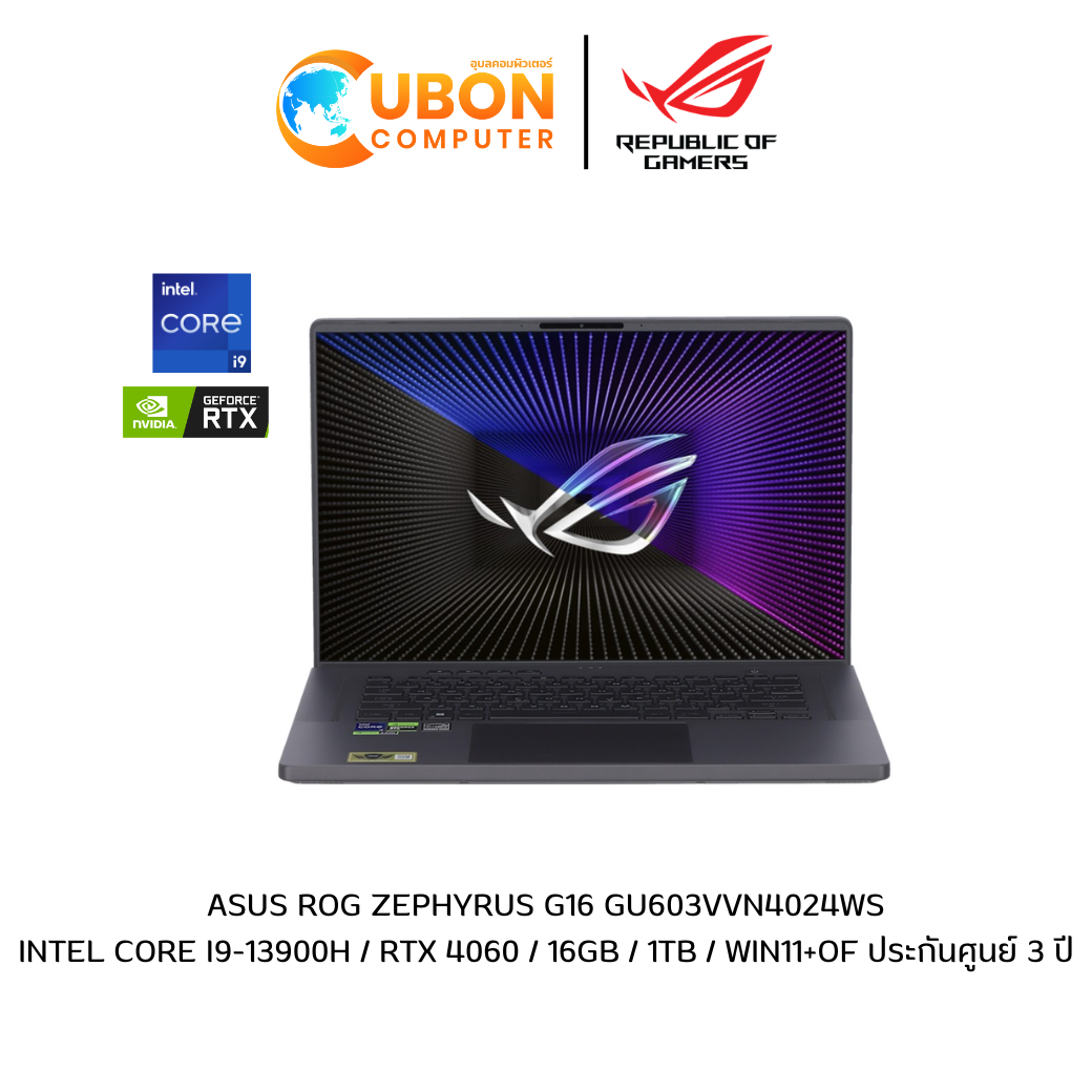 NOTEBOOK โน๊ตบุ๊ค ASUS ROG ZEPHYRUS G16 GU603VV-N4024WS INTEL CORE I9-13900H / RTX 4060 / 16GB / 1TB / WIN11+OF ประกันศูนย์ 3 ปี