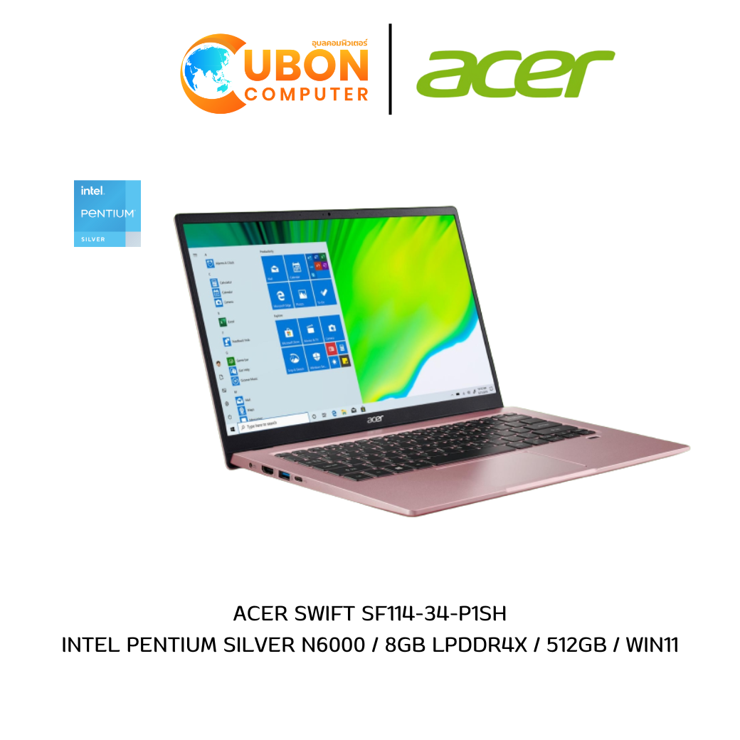 NOTEBOOK โน๊ตบุ๊ค ACER SWIFT SF114-34-P1SH INTEL PENTIUM SILVER N6000 / 8GB LPDDR4X / 512GB / WIN11