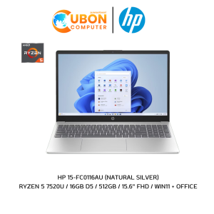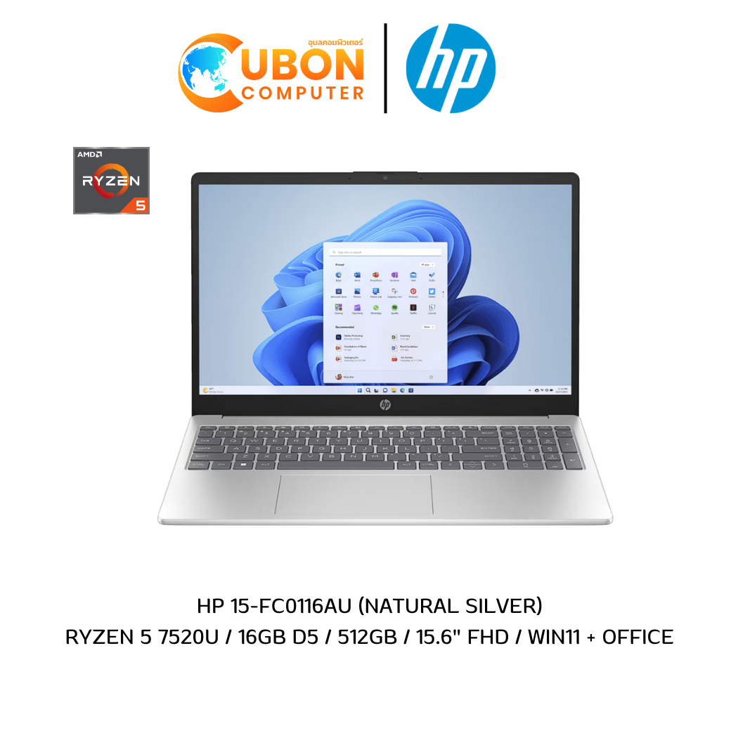 NOTEBOOK (โน้ตบุ๊ค) HP 15-FC0116AU RYZEN 5 7520U / 16GB D5 / 512GB / 15.6" FHD / WIN11 + OFFICE (NATURAL SILVER)