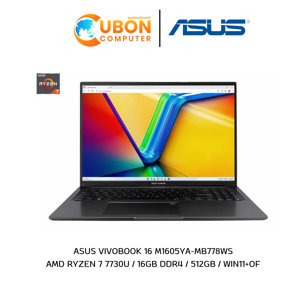 NOTEBOOK โน๊ตบุ๊ค ASUS VIVOBOOK 16 M1605YA-MB778WS AMD RYZEN 7 7730U / 16GB DDR4 / 512GB / WIN11+OF