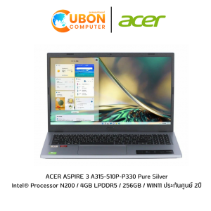 ACER ASPIRE 3 A315-510P-P330 Pure Silver NOTEBOOK (โน๊ตบุ๊ค) Intel® Processor N200 / 4GB LPDDR5 / 256GB / WIN11 ประกันศูนย์ 2ปี