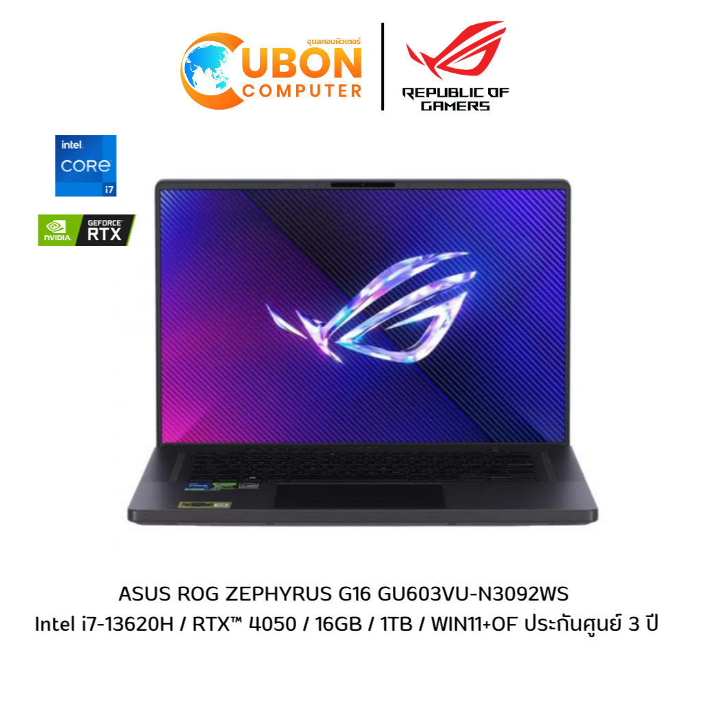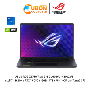 ASUS ROG ZEPHYRUS G16 GU603VU-N3092WS NOTEBOOK (โน๊ตบุ๊ค) Intel i7-13620H / RTX™ 4050 / 16GB / 1TB / WIN11+OF ประกันศูนย์ 3 ปี