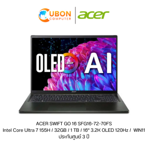 ACER SWIFT GO 16 SFG16-72-70FS NOTEBOOK (โน๊ตบุ๊ค) Intel Core Ultra 7 155H / 32GB / 1 TB / 16" 3.2K OLED 120Hz / WIN11 ประกันศูนย์ 3 ปี