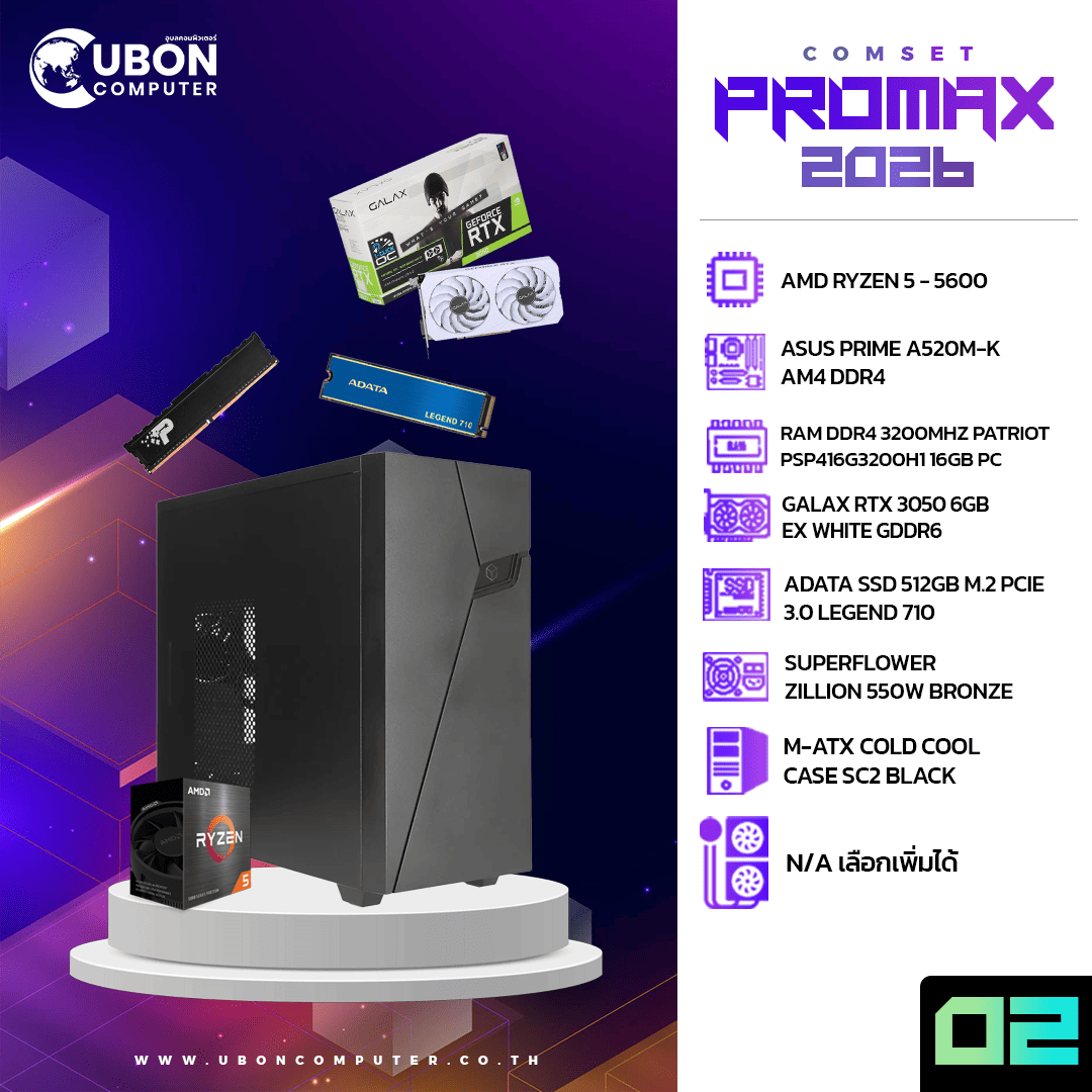 COMSET PROMAX 02 - AMD RYZEN 5 5600 / 16GB / 512GB/ RTX3050 / 550W