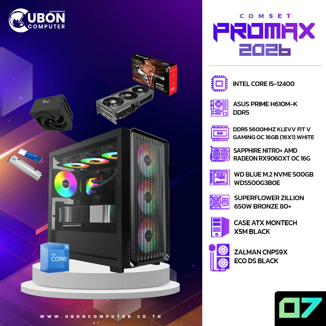 COMSET PROMAX 07 - INTEL CORE I5-12400 / 16GB / 500GB / RX9060XT / 650W