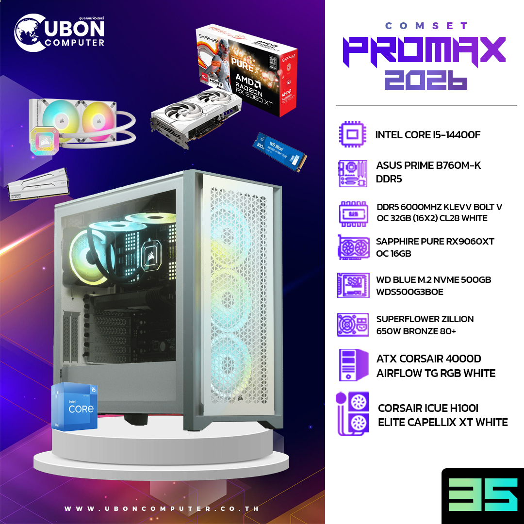 COMSET (คอมประกอบ) PROMAX 35 INTEL CORE I5-14400F / RX9060XT OC 16GB / DDR5 6000MHZ 32GB / M.2 500GB / 650W BRONZE 80+