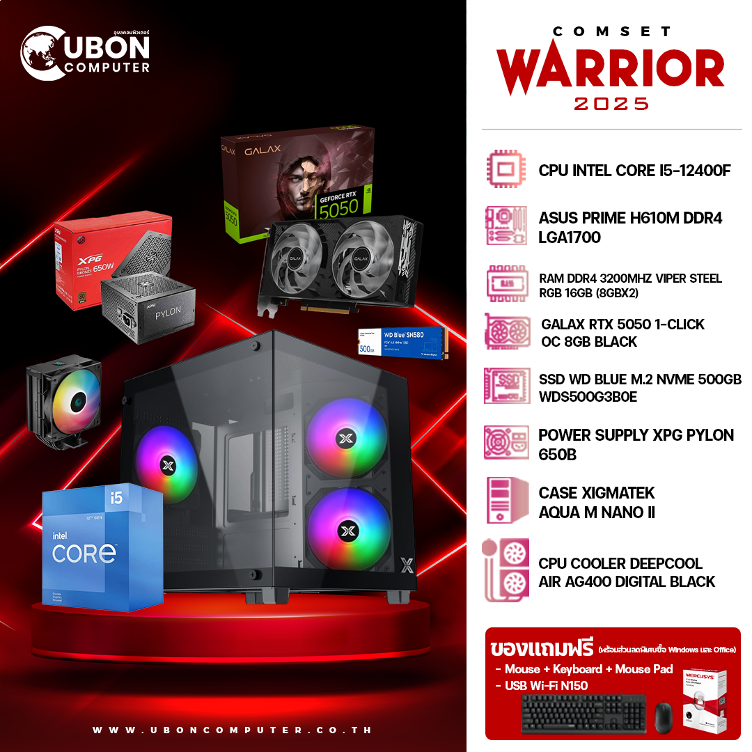 COMSET WARRIOR 15 - INTEL CORE I5-12400F / 16GB DDR4 / 500GB / RTX5050 1-CLICK OC / 650W