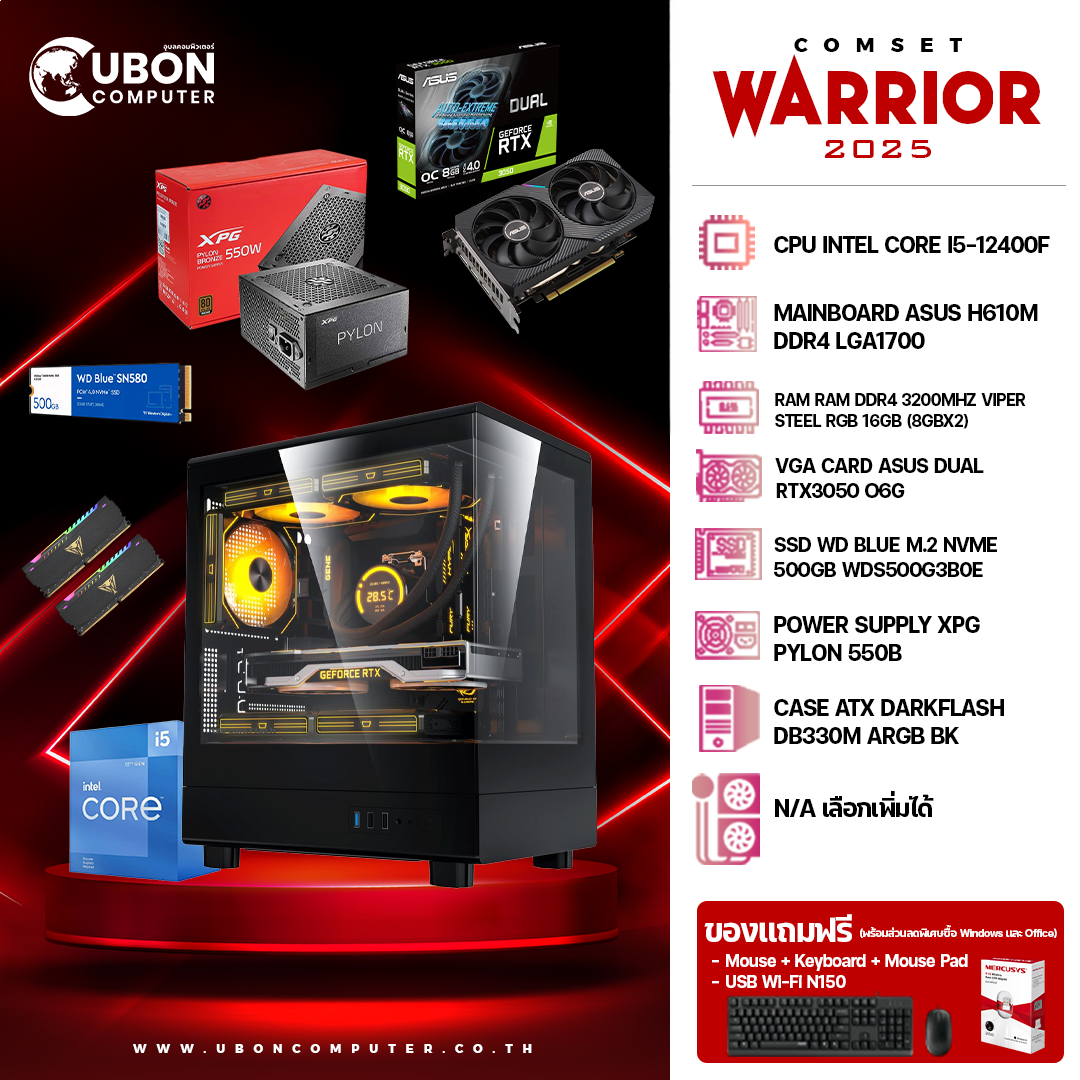 COMSET WARRIOR 25 - INTEL CORE I5-12400F / 16GB / 500GB / RTX3050-OC-6GB / 550W