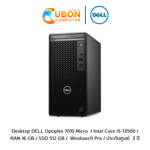 Desktop (เดสก์ท็อป) DELL Optiplex 7010 Micro / Intel Core i5-13500 / RAM 16 GB / SSD 512 GB / Windows11 Pro / ประกันศูนย์ 3 ปี