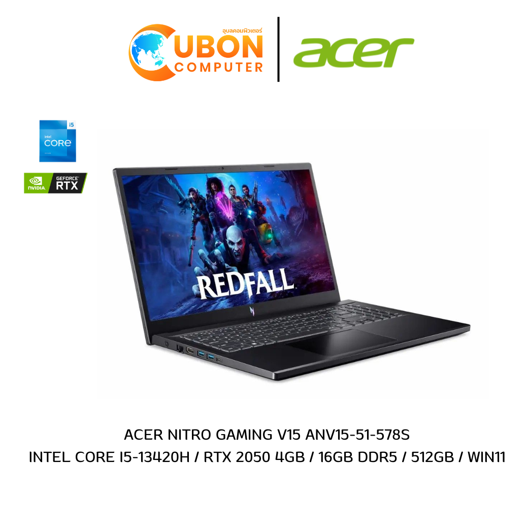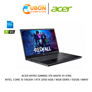 ACER NITRO GAMING V15 ANV15-51-578S NOTEBOOK (โน๊ตบุ๊ค) INTEL CORE I5-13420H / RTX 2050 4GB / RAM 16 GB / SSD 512 GB / WIN 11 HOME / ประกันศูนย์ 3 ปี