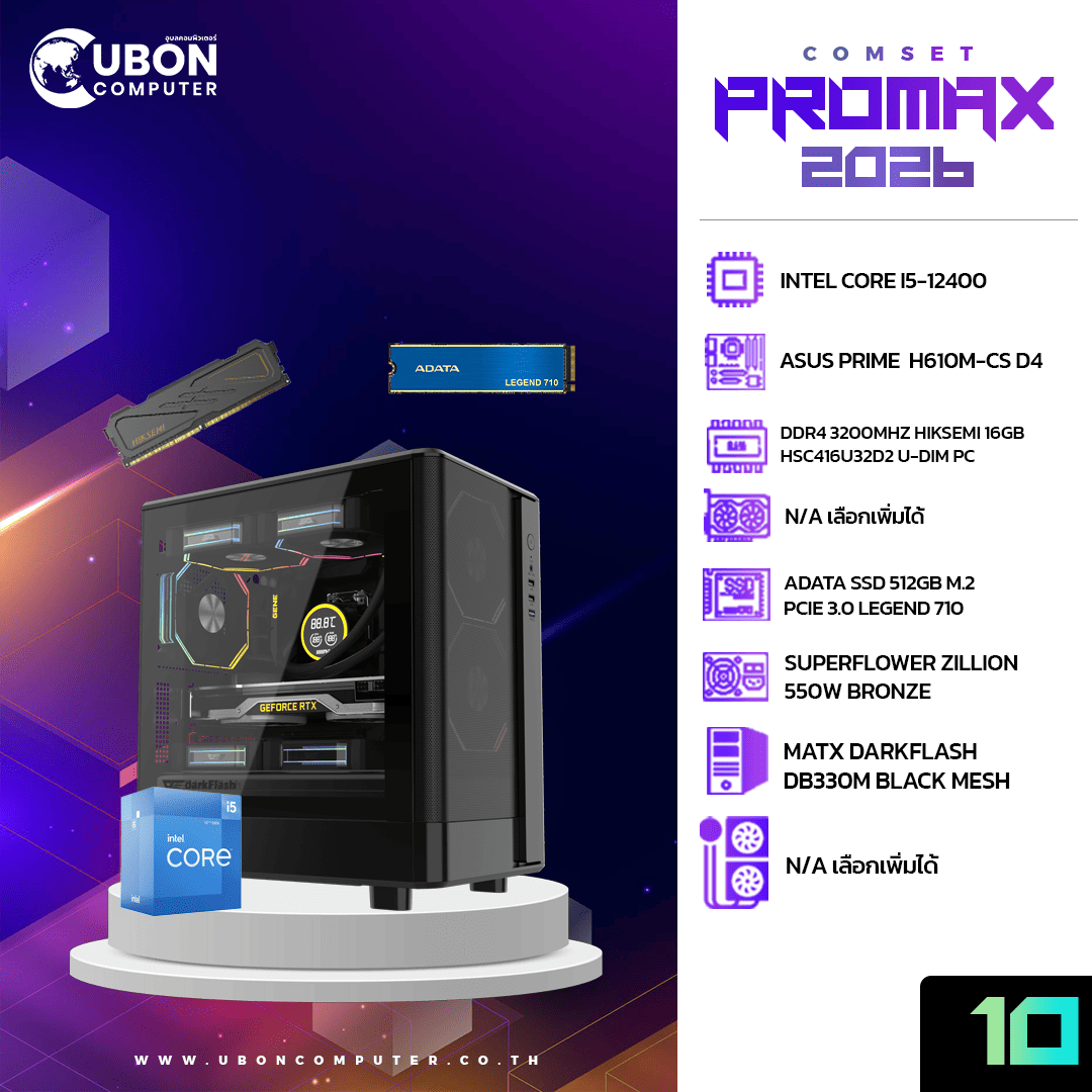 COMSET (คอมประกอบ) PROMAX 10 INTEL CORE I5-12400 / DDR4 3200MHZ 16GB / M.2 512GB / 550W BRONZE