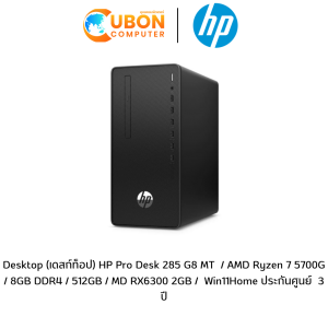 Desktop (เดสก์ท็อป) HP Pro Desk 285 G8 MT / AMD Ryzen 7 5700G / 8GB DDR4 / 512GB / MD RX6300 2GB / Win11Home ประกันศูนย์ 3 ปี