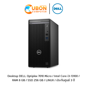 Desktop (เดสก์ท็อป) DELL Optiplex 7010 Micro / Intel Core i3-13100 / RAM 8 GB DDR4 / SSD 256 GB M.2 / LINUX / ประกันศูนย์ 3 ปี