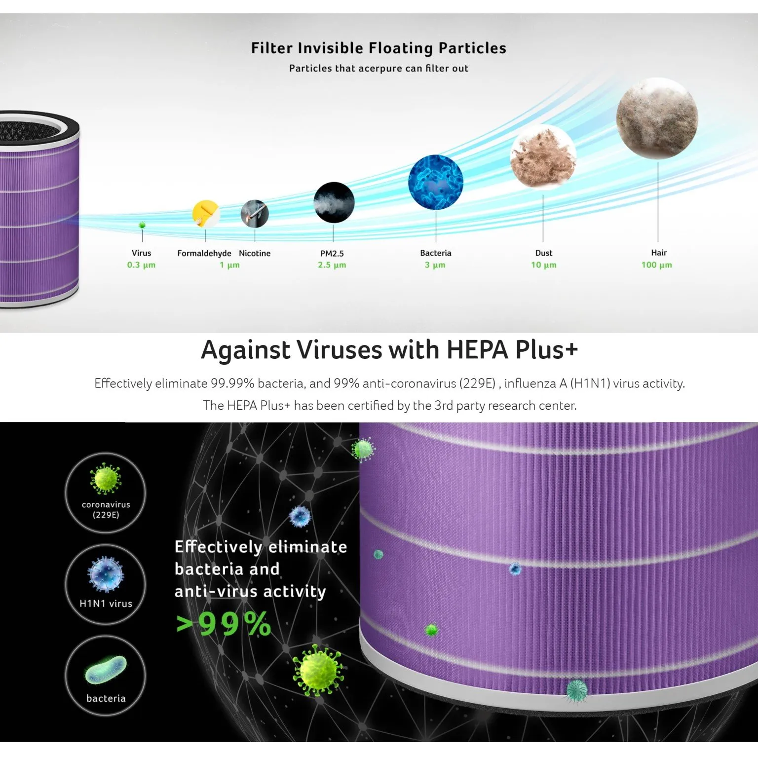 แผ่นกรองเครื่องฟอกอากาศ ACER PURE FILTER 4 IN 1 HEPA ACF173 FOR เครื่องฟอกอากาศ ACER รุ่น C2/P2 (PURPLE)