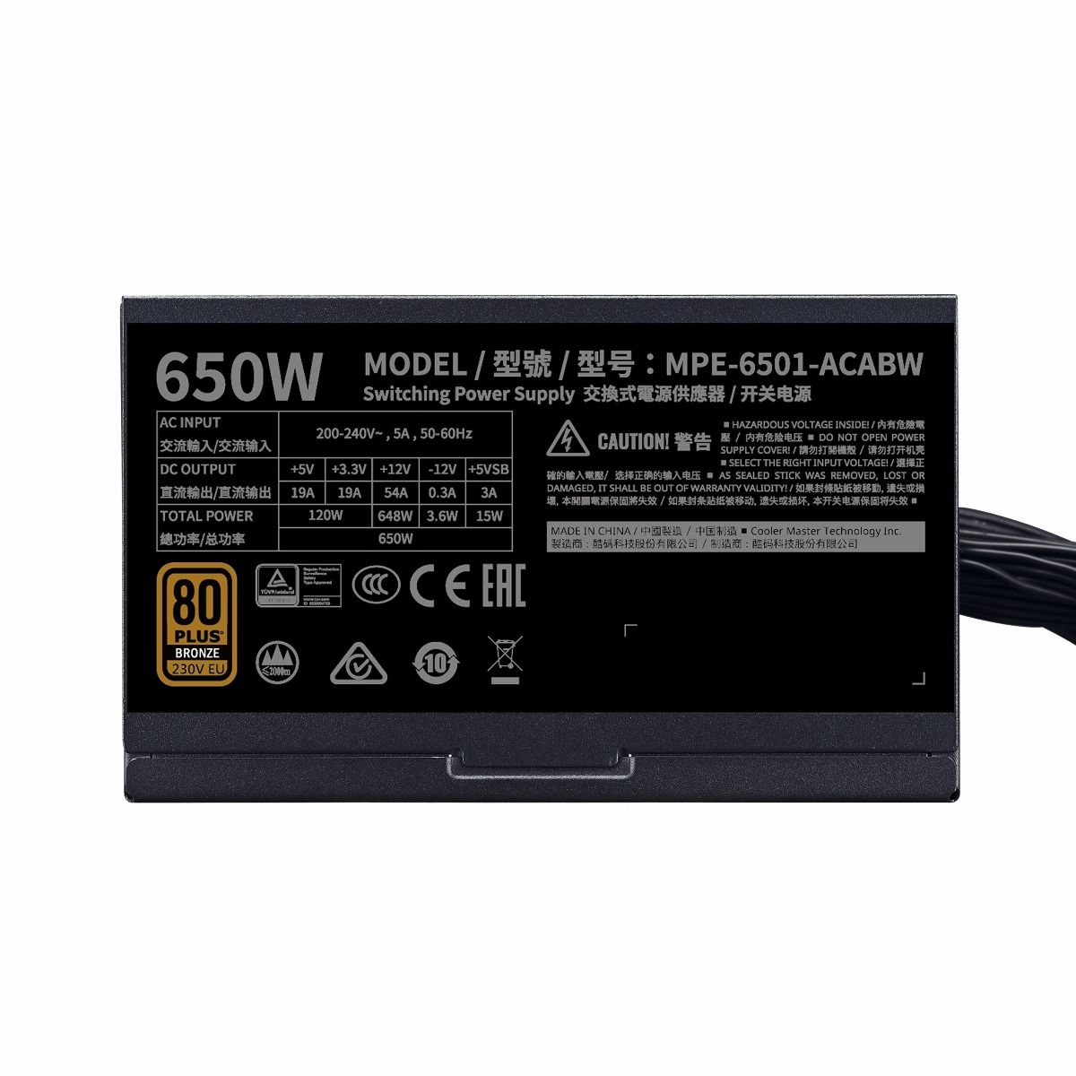 POWER SUPPLY (อุปกรณ์จ่ายไฟ) COOLER MASTER MWE 650W 80PULS BRONZE รับประกัน 5 ปี