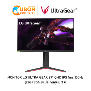 MONITOR (จอมอนิเตอร์) LG MONITOR ULTRA GEAR 27” QHD IPS 1ms 165Hz Monitor with FreeSync (Premium) NVIDIA G-SYNC ประกันศูนย์ 3 ปี