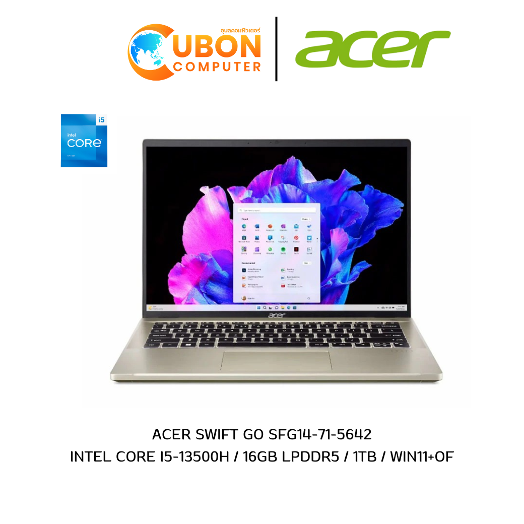 NOTEBOOK โน๊ตบุ๊ค ACER SWIFT GO SFG14-71-5642 INTEL CORE I5-13500H / 16GB LPDDR5 / 1TB / WIN11+OF