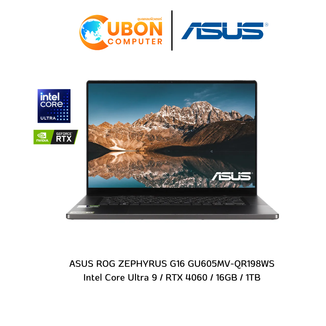 ASUS ROG ZEPHYRUS G16 GU605MV-QR198WS NOTEBOOK (โน๊ตบุ๊ค) Intel Core Ultra 9 / RTX 4060 / 16GB / 1TB / WIN11 ประกันศูนย์ 3 ปี
