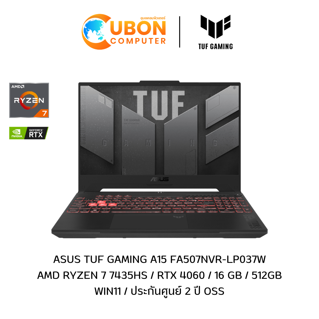 ASUS TUF GAMING A15 FA507NVR-LP037W NOTEBOOK (โน้ตบุ๊ค) AMD RYZEN 7 7435HS / RTX 4060 / 16 GB / 512GB / WIN11 / ประกันศูนย์ 2 ปี OSS