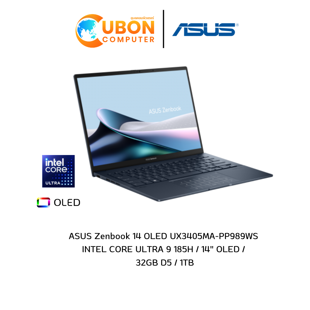 ASUS Zenbook 14 OLED UX3405MA-PP989WS NOTEBOOK (โน๊ตบุ๊ค) INTEL CORE ULTRA 9 185H /14" OLED / 32GB D5 / 1TB / WIN11 + OFFICE ประกันศูนย์ 3 ปี