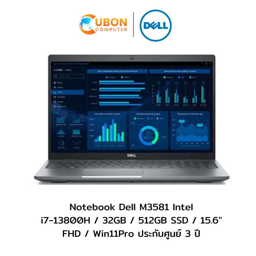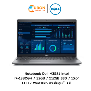 Dell M3581 Notebook (โน๊ตบุ๊ค) Intel i7-13800H / 32GB / 512GB SSD M.2 / 15.6″ FHD / Win11Pro ประกันศูนย์ 3 ปี