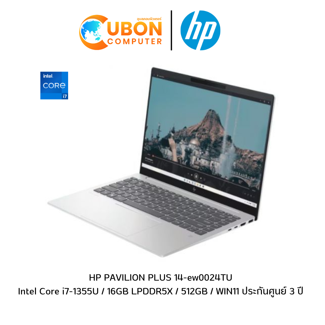 HP PAVILION PLUS 14-ew0024TU Intel Core i7-1355U / 16GB LPDDR5X / 512GB / OLED 2.8k / WIN11 ประกันศูนย์ 2ปี