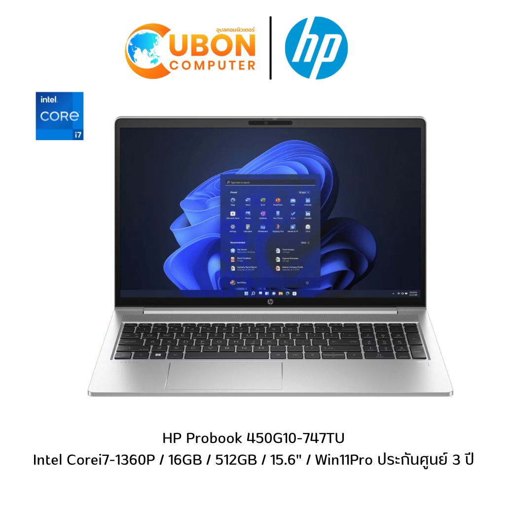 - HP Probook 450G10-747TU NOTEBOOK (โน๊ตบุ๊ค) Intel Corei7-1360P / 16GB / 512GB / 15.6" / Win11Pro ประกันศูนย์ 3 ปี
