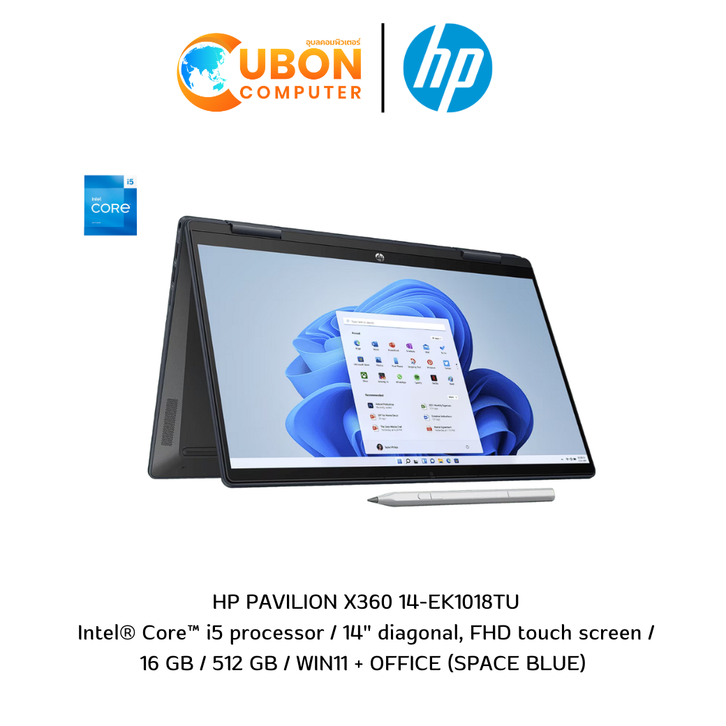NOTEBOOK 2 IN 1 (โน้ตบุ๊คแบบฝาพับ 360 องศา) HP PAVILION X360 14-EK1018TU WIN11 + OFFICE (SPACE BLUE)