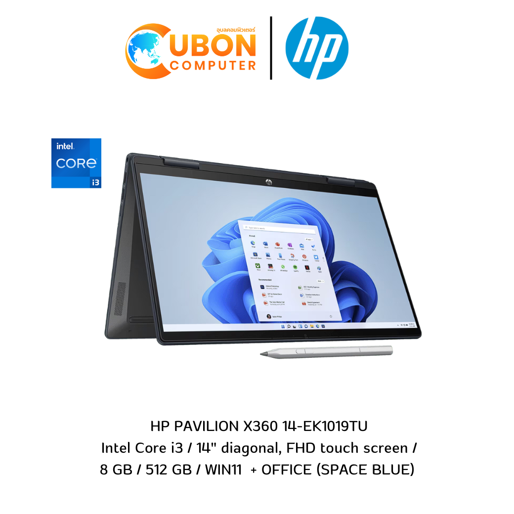 NOTEBOOK 2 IN 1 (โน้ตบุ๊คแบบฝาพับ 360 องศา) HP PAVILION X360 14-EK1019TU WIN11 + OFFICE (SPACE BLUE)