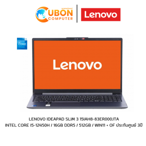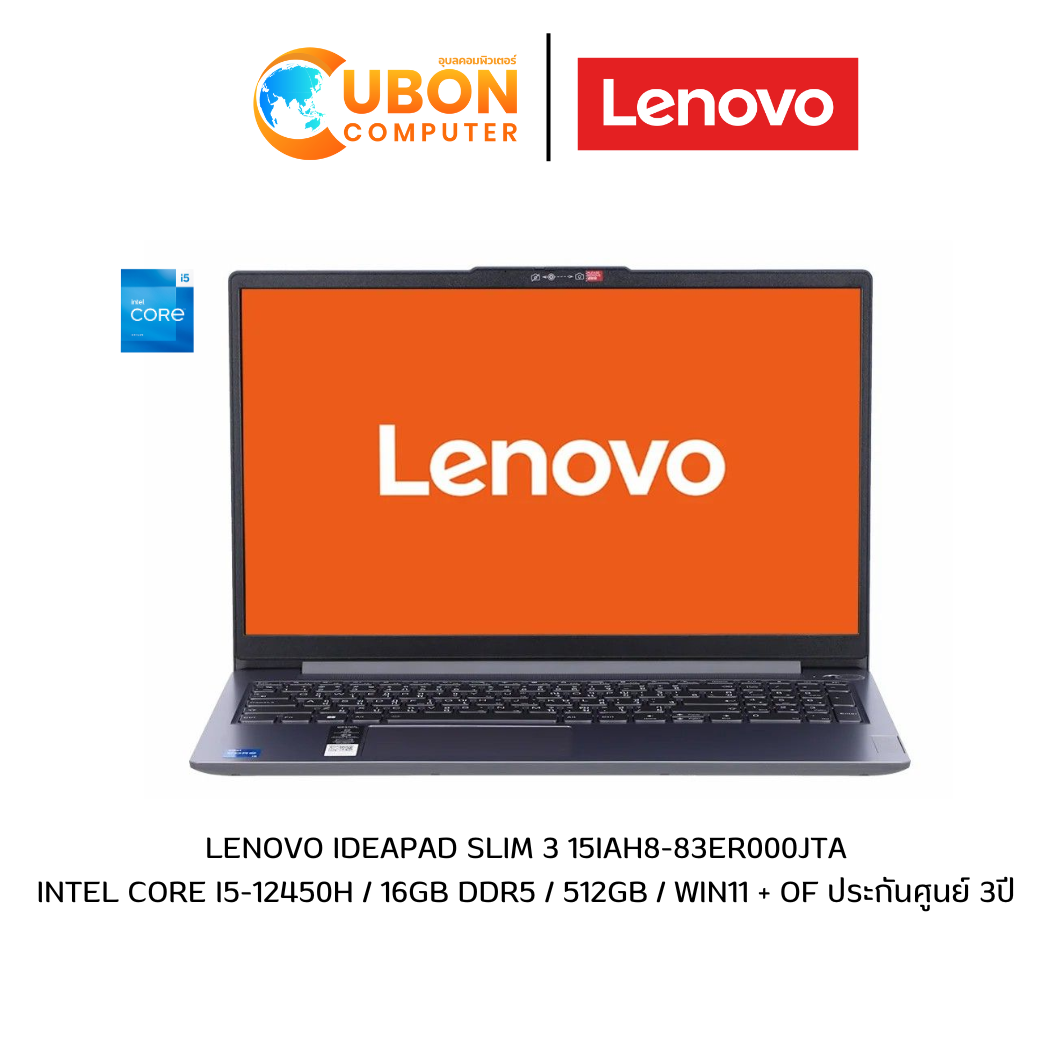 LENOVO IDEAPAD SLIM 3 15IAH8-83ER000JTA NOTEBOOK (โน๊ตบุ๊ค) INTEL CORE I5-12450H / 16GB DDR5 / 512GB / WIN11 + OF ประกันศูนย์ 3ปี