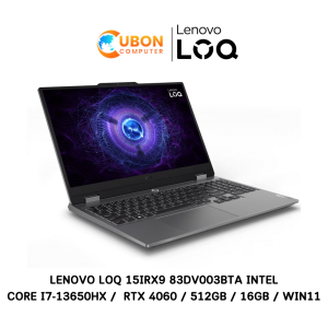 LENOVO LOQ 15IRX9 83DV003BTA NOTEBOOK (โน๊ตบุ๊ค) INTEL CORE I7-13650HX / RTX 4060 8GB GDDR6 / RAM 16 GB / SSD 512 GB / WIN 11 HOME / ประกันศูนย์ 3 ปี