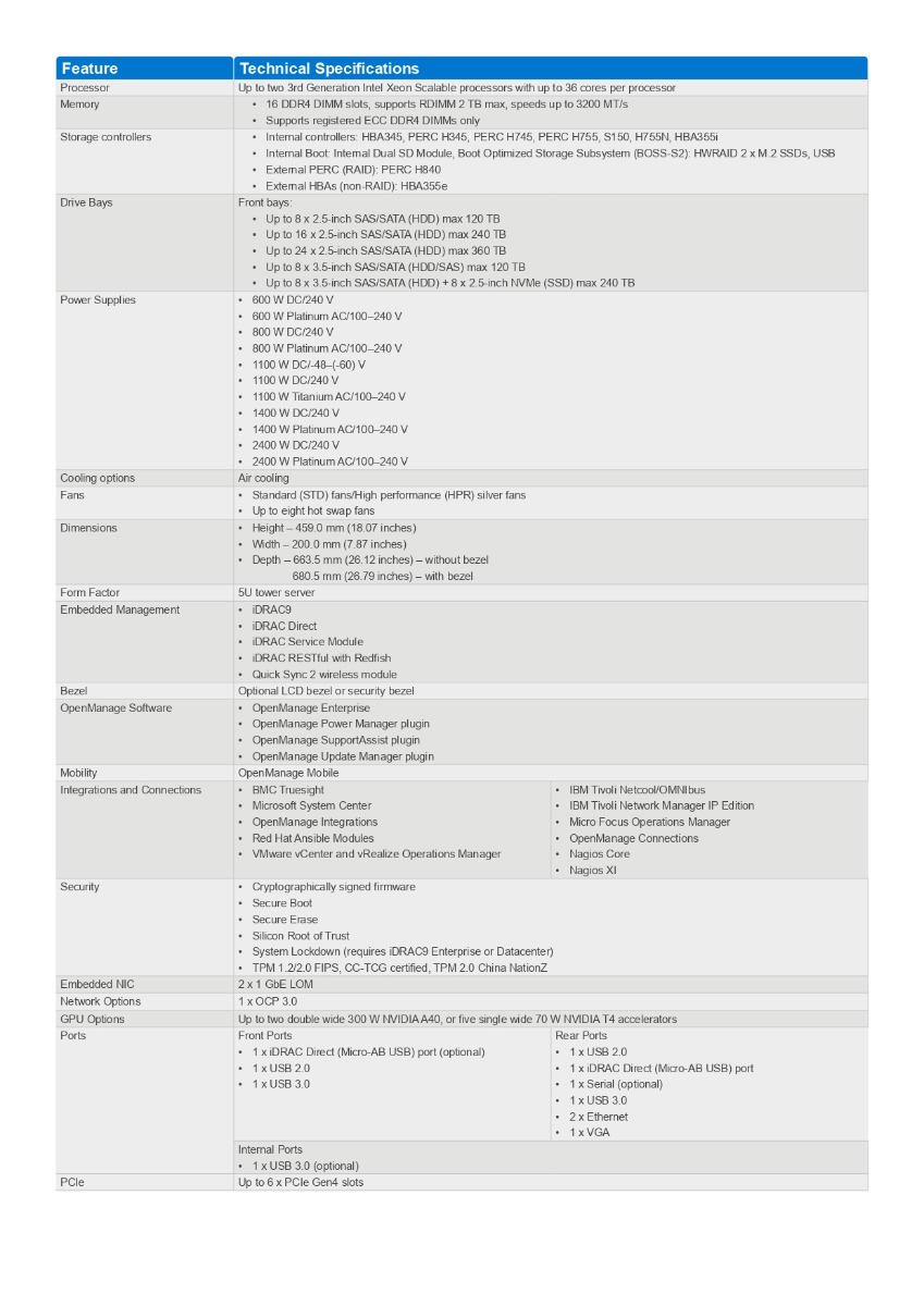 - SYSTEM MANAGEMENT : iDRAC9 Datacenter 15G with OpenManage Enterprise Advanced